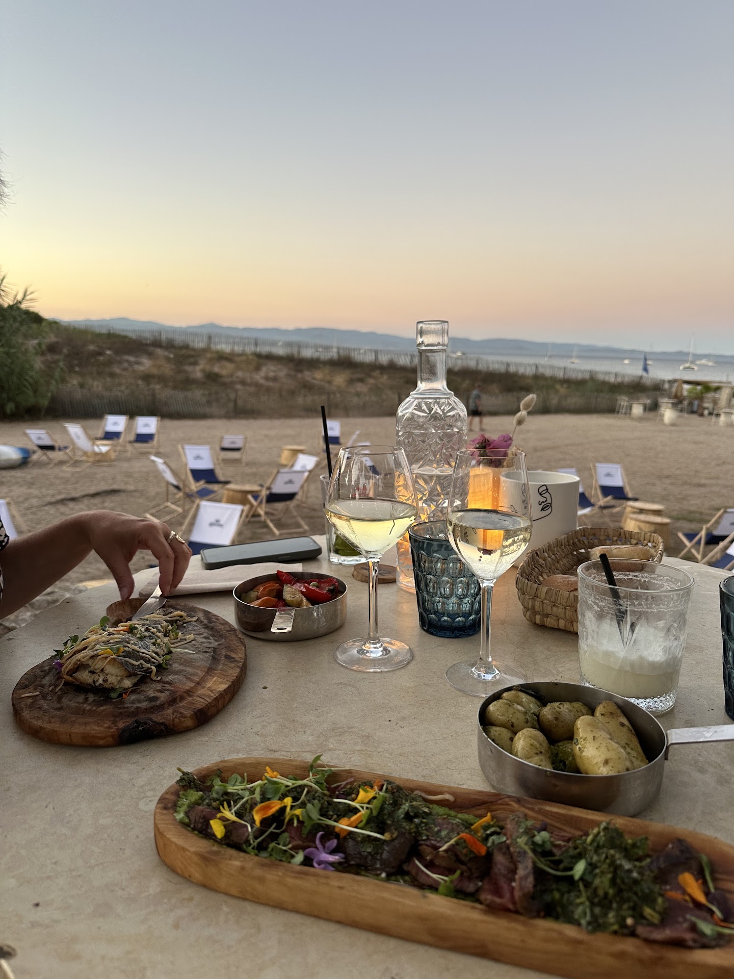 La plage...Très bon accueil,la responsable de la plage est sympa et nous explique tout.Les transat en rondins de bois sont sympas MAIS la plage est installée sur une bute. Si vous êtes au premier rang la vue est superbe. Au deuxième rang passe encore mais au 3eme rang on est sur la descente de la bute donc les transats penchent en arrière et on ne voit plus du tout la plage même dossier relevé...Bon...Il faut réserver longtemps à l'avance pour avoir le premier rang qui est booké, logique...Mais bon,nous avons l'habitude des grandes plages privées où même au fond, on a vue sur la mer... Petit food truck sur la plage qui propose snack et boissons mais choix très restreint. Si vous souhaitez un cocktail ou une bouteille il faut aller le chercher soi-même au bar du resto... Bof...Par contre le serveur a été cool et a proposé d'amener les verres sur la plage, oui parce que 5 verres à ramener à 2,tout le monde n'est pas serveur,c'est un métier,on aurait tout fait voler...😂 Merci à lui! Bref bref, tout ça n'est pas bien grave,ne gâche pas la journée et même nous amuse un peu. Mais du coup 25€ le transat, c'est trop cher! Payer 5 à 10€ (par transat à 5 aïe) de plus qu'ailleurs pour profiter d'un cadre sympa ok, aucun problème sur le principe, mais là on ne voit pas la plage et les services sont moins poussés qu'ailleurs donc ben non en fait! Dommage