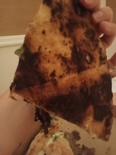 La pizza est SUCCULENTE. Genre vraiment excellente. La pâte est fine, croustillante, équilibrée. Le vin est bon ^^ La pizzaiola (c’est comme ça que l’on dit ? Je n’ai jamais su…) est joyeuse et on voit qu’elle est dans son truc, qu’elle aime les gens, et son métier. Elle est seule à tout gérer ce soir, en plus.