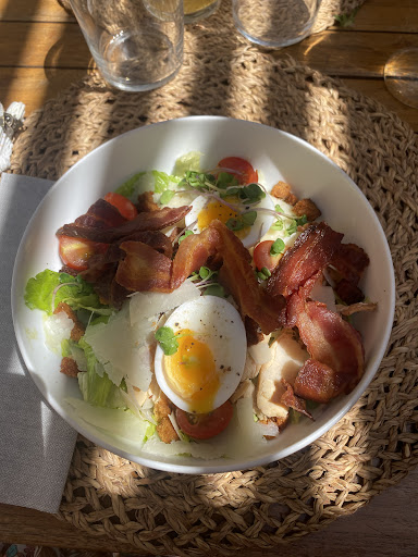 La carte sur les transats est un peu plus petite que celle du resto, d’ailleurs bravo à la personne qui a fait les illustrations, elles sont super jolies! Vous pourrez y manger des salades/ sandwichs/ burger (entre 20/25€). Le 1er service à 12h est très rapide.