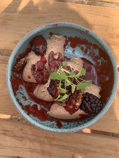 Ici, la magie de la VRAIE cuisine opère. Le céviche joue avec les sensations. Tout y est plus que parfait, de la salicorne croquante aux variations de pamplemousse confit ou frais. La suite est une explosion de merveilles en bouche. Que ce soit ce maigre de Méditerranée ou ce carpaccio de veau. Mousseline d'ail noir, poudre d'olives séchées, pignons torréfiés, caviar de grains de moutarde... la valse est parfaite. Mes 2 convives du jour sont aussi épatées que moi. Bravo messieurs (d'ailleurs je n'ai vu aucune demoiselle tiens !). Vous nous avez réconciliés avec la Cuisine avec un grand C majuscule.