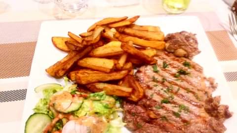 Sur place, serveur trÚs agréable et attentionné, temps d'attente plus que correct. Que ce soit l'apéritif, les cotes de boeuf avec frittes maison en passant par les légumes, tout était parfait, nous nous sommes régalés, on voit que c'est fait maison. J'y retournerais sans...