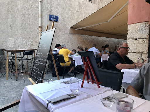 Good location and service, less than mediocre food. We ordered 2x risotto. One was the menu du jour € 18: risotto with girolles, asparagus and parmesan cheese and coffee with extras. Lots of risotto, girolles and two very small pieces of what i think were uncooked white asparagus stems and 2 coquilles. Good coffee with 3 small desserts, ok not great. The other was the risotto from the main menu €25: half the amount of risotto (entree portion) 5 coquilles, girollles and 3 green asparagus tips. No coffee included. However what spoilt both dishes was the amount of sand in it. Probably from the girolles. We had a great bottle of bandol rose. € 29 and certainly worth while. However as food was a let down we would not revisit...