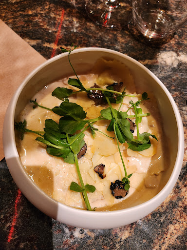 Read morePremière fois dans ce restaurant. J'étais très ravie de mon entrée des raviolis au cèpes et à la truffe. Mon conjoint a pris un tataki de bœuf, il manquait peut être une tranche ou deux en plus mais sinon il a bien aimer.. Pour ce qui est du plat on a été déçu. J'ai pris un magret de canard rosée qui m'a été apporter trop cuit les accompagnements n'était pas les mêmes que ceux écrit sur la carte et la serveuse ne m'a pas dit que ça serait d'autre accompagnement. Mon conjoint lui a pris la petite bouillabaisse, le poisson était trop cuit et pour lui sûrement du surgeler. Pour le dessert nous avons pris un tiramisu et un café gourmand. La pana cotta et la crème brûlée du café gourmand n'ont pas trop de goût c'est dommage. Le service est un peu long, nous sommes rester 2 bonnes heures la bas. Petit hic egalement concernant la table qui glisse beaucoup, impossible de couper sa viande sans que l'assiette bouge obliger de mettre sa serviette en dessous. Correct dans l'ensemble mais...