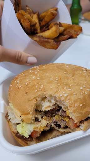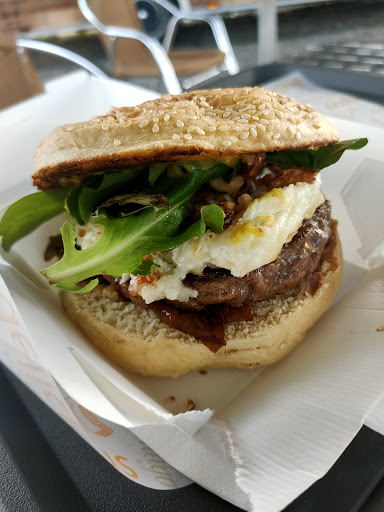 Tester pour la première fois après y être passer devant pendant des années, quelle fût notre surprise ! Accueil agréable sans chichi, la qualité, le goût et la quantité sont top. Et pour le prix, c'est dans la lignée de la chaîne de fast-food voisine mais en bien meilleur et plus copieux. Les sodas classiques en canettes et 4 bières locales sont proposées en accompagnement, je n'ai pas fait attention s'il y avait de l'eau !? Un petit congélateur avec quelques Haagen Dazs, Ben and Jerry's et magnum serait le top du top ! Un lieu où il ne faut plus hésiter à s'arrêter pour manger sur place en extérieur ou bien à emporter. Bonne...
