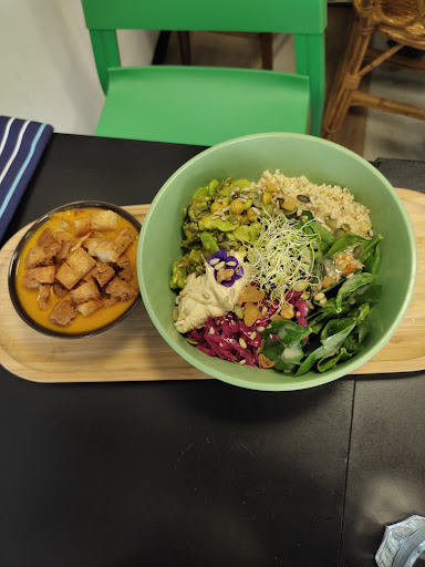 Read moreJe connaissais Aloe Vega via des amis, j'ai découvert le restaurant il y a 2 ans. Régulièrement déçu de la cuisine proposée, les plats manquent de saveurs, d'équilibre (très souvent la protéine est quasi inexistante - c'est pas parce que c'est ce qui coûte le plus cher dans un plat que cela doit être négligé !). Quelques cacahuètes et cubes de faumages ne suffisent pas à dire qu'on met de la protéine. On charge bien sur les féculents par contre pour remplir l'estomac et se soulager la conscience et justifier l'addition. Quelques feuilles d'épinards et le tour est joué... ou pas. Malgré tout les jeux de couleurs et textures sont réussis dans les plats. Une cuisine qui gagnerait à s'équilibrer, à amener des saveurs moins plates et en proposant réellement de...