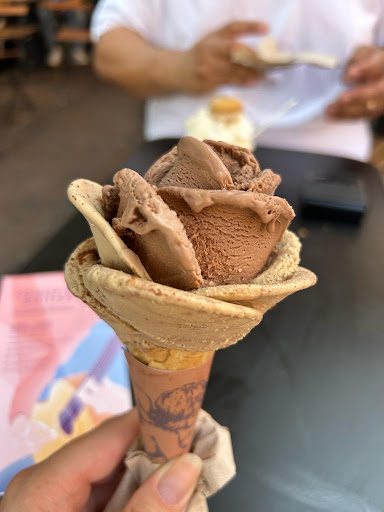 The location alone sets this place apart from other nearby ice cream spots. However, I must echo what others have mentioned: it would be great if someone could take care of cleaning the tables in-between customers. Don't forget to ask for...