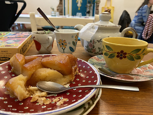 Read moreWe love coming here with my daughter for tea time. The place has a lovely decoration, you feel cozy just as when ur at ur one place. They have a great selection of teas and an amazing “tarte tatin “ (is like as apple pie in a crazy French version). They have also a corner with games and toys so she can play while I do some little work on my phone or computer if I bring it. I find this place definitely baby-kids friendly, they even have a thing to change your baby’s diapers!! The owners are great people, deeply connected to they soul… which is why I love to come to meet them for a little chat if they are free. I have had lunch before also. They may not have vegan option but the few vegetarian ones are really...
