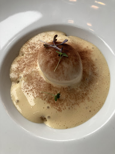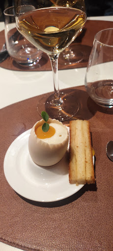 Read moreCe fut un peu une montagne russe.. L entrée (bouillon dashi) n avait pas grand intérêt, certes un bouillon de base c est un peu fade mais je pense que le rôle d un gastronomique est de mettre du goût la ou il n y en a pas.. ayant moi même etait cuisinière dans un gastronomique je me demandais sérieusement qu est ce que je foutais la Et là le plat arrive et la ça me remets les idées en place, un pur délice, l équilibre des sauce et de l émulsion était parfait, la viande à découper à la petite cuillère, les légumes parfaitement cuits avec de vraies saveurs, c était fou! Et la le dessert arrive..(je me fais la réflexion que ça a l air délicieux mais que bon ça fait 3 fois le même dressage avec une tuile dessus ça commence à être décevant visuellement) Et la grosse claque: première bouchée délicieuse mais je n avais pas attaquée l intérieur..malheureux l équilibre des saveurs entre la crème au chocolat et les fruits exotiques étaient raté à mon avis..le chocolat n était pas assez chocolaté il avait goût de chocolat au lait et ça se mariait mal aux fruits exotiques (coco et ananas) ce qui est dommage parce que chaque éléments séparément était délicieux
