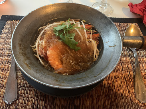 Read moreService rapide, nous nous sommes échangés des plats. Soupe : J'ai aimé le Tom kha kaï (8€) davantage que le Tom Yam Kung aux crevettes (10€). Ensuite, le keng masamane kaï davantage que Pad prik keng calamar dont j'ai trouvé le goût un peu fort (c'est peut-être normal, je ne suis pas connaisseur). Bon repas, mangé avec plaisir, de plus j'apprécie de manger sans gluten et sans laitage, mais pas conquis pour autant. Quantités correctes, pas de quoi être rassasié. Ce que je reproche le + à ce restaurant, c'est de ne pas prendre la carte bleue. Obligé d'aller au distributeur le plus proche. De l'argent qui sera peut être non déclaré, puisque pas de preuve de notre passage. Ensuite, la carafe d'eau est restée longtemps vide, car je ne voyais pas la serveuse, excepté quand on a été servi. Je n'ai pas pris le dessert car la carte des desserts est séparée, et si les tarifs ne convenaient pas, j'aurais trouvé déplaisant de dire "Non, finalement, je ne prends rien". Du coup, je ne connais toujours pas les tarifs, ce que j'ai vu servi autour de moi ne m'a pas tenté énormément. J'aurai préféré avoir un aperçu des desserts proposés au moment de la commande initiale, que j'aurais pu commander après le...