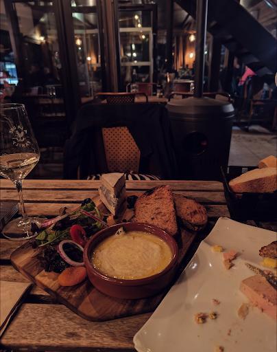 Deuxième passage : Le service est toujours de qualité quoique peut être un peu surfait au niveau de l'attitude du serveur mais rien d'important en soi. Au niveau du repas, je suis parti sur une soupe de poissons maison, croûtons à l'ail accompagnée de sa rouille et fromage qui était au bas mot excellente, un vrai plaisir gustatif sachant que je n'en avais pas dégusté depuis longtemps ! Et en plat, un burger bien copieux avec une sauce aux morilles et Saint nectaire qui suivait la même lignée gustative que la soupe de poissons, burger accompagne de salades et de frites à base de lard fumé (me semble-il). Contrairement au premier passage, le rapport qualité prix était très correct, je pense que le rapport RQP vaut le coup selon les plats que nous commandons. Je rajoute une étoile supplémentaire à ma...