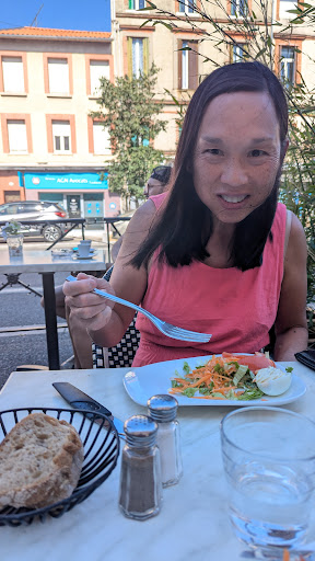 Read moreWe are Canadians that had a stopover in Toulouse and looking for an early dinner. We were studying the plat du jour posted outside the restaurant. The owners came over and explained the meals and they would make it for us despite it was so early (5:00PM). We sat on the terrace with drinks watching the people and traffic stroll by. Our meals were served quickly and efficiently. The food was just like it was prepared from Mom's kitchen. It was wholesome, flavourful and fresh. Just what we needed. Don't pass on the dessert. The portions are just enough to satisfy our hunger and leave us happy. Three different people waited on us. Everyone was very attentive and it was important to them that we were happy. Highly recommend to make a stop at...