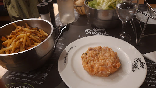 Le serveur nous annonce, le sourire en coin, que les frites sont à volontés. Quelle générosité, c'est ça l'esprit bistrot. Du partage, de l'échange, et du don.