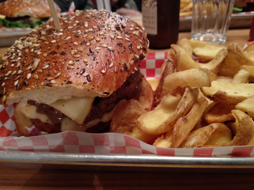 Deuxièmement : si nous continuons dans la comparaison, le burger m'a été servi avec un pain température ambiante, l'ancienne enseigne le faisait un peu toasté. Si vous commandiez le même pain, celui-ci n'a pas la même saveur toasté et non toasté. Pensez-y. Le fromage n'était pas assez fondu, puis ressemblait exactement à ce qu'on pourrait avoir en supermarché en fromage en tranche conditionné. Le serveur m'a dit quand même que la provenance de la viande avait changé. Donc du coup moins bonne aussi ; couleur rosée à l'intérieur tirant vers le gris pour les parties cuites. Je doute du 100% pur boeuf de la viande rien qu'à la couleur... Pareil pour les frites, qui ont certes la même forme caractéristique du lieu, mais probablement pas la même huile de cuisson. Cela dit, je les ai appréciées.