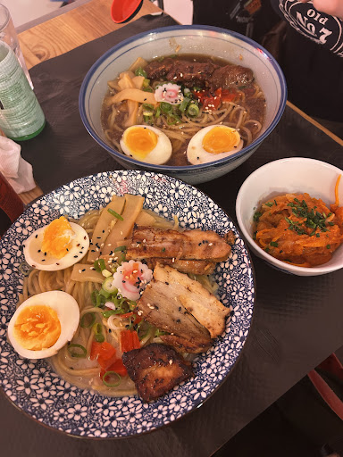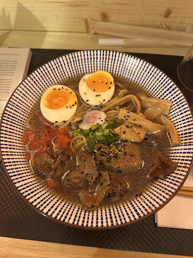 Read moreAssez déçu par ce restaurant. Nous sommes arrivés à l’ouverture, mais il semblait y avoir un vrai problème d’organisation au niveau du service. Nous avons attendu plus d’une demi-heure avant que quelqu’un ne prenne notre commande, alors que des clients arrivés après nous mais installés au comptoir au rez-de-chaussé avaient déjà terminé de manger. Nous étions trois à une table de quatre, puis quatre autres personnes sont arrivées et on nous a demandé de nous déplacer sur une petite table pour deux, ce qui n’était pas agréable. Côté cuisine, nous avons commandé trois portions de karaage : deux sur trois étaient trop cuites, avec un arrière goût de brûlé. Le bouillon du ramen était très léger, trop à mon goût. Les nouilles étaient bonnes. Les œufs mollets semblaient peu, voire pas du tout marinés, au vu de leur couleur et leur saveur. Les gyozas étaient bons, même s’il leur manquait un peu le côté poêlé croustillant. Bref, une expérience assez décevante : un service désorganisé, surtout au niveau des tables en sous-sol, et une cuisine en deçà de ce que laissent espérer les notes...