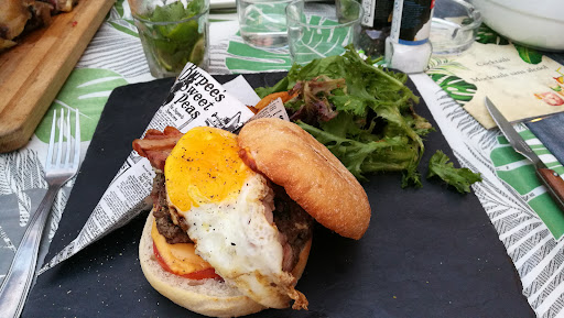 Good: the place are really great, indoor or outdoor are a good vibes of "guingette" with nice light's! The food are pretty great too, and lot of drink to try. Nice plate with a good BBQ taste Lot of plate are free salt too