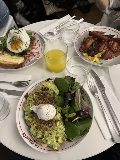 La Fiancee is one of those rare gems in Toulouse where food and hospitality are above and beyond. I've eaten here many times since 2016 and I've always had incredible experience. I have a bunch of food intolerances which they always kindly accommodate and I appreciate that more than I can say. Their staff is always incredibly kind and very often bi-lingual and the food is top notch. I visited just yesterday and I ordered the big plate which is a full on English style breakfast with eggs, toast, sausage, bacon, mushrooms, beans and salad. I didn't actually expect it to be big but it was! I'm not sure if they heard me talking about my pregnacy but the amount of bacon they gave me was definitely a portion for 2! I didn't ask for it but it was an incredibly sweet gesture and I felt taken care of. I cannot reccomend this place enough. Seating is limited which I think makes it managable and cozy so my only advice would be to make a reservation (if possible) or show up early because many of us love it here and it can get busy. Oh also the...