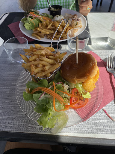 Read moreUn bon restaurant de touristes Un accueil assez chaleureux. Nous nous installons donc pour boire une petite bière. Nous apercevons la carte assez réduite et donc probablement "fraîche". Nous nous laissons donc tenter à rester sur place manger. À la prise de commande de l'entrée... Nous demandons le saumon... Pas de saumon... Nous demandons une salade océane à 15euros la salade... Oui biensur mais il n'y aura pas de saumon dedans... Et une assiette de gambas mangue à 15 euros également... À l'arrivée de l'entrée, la salade ressemble plus à une salade qu'à une salade composée et les gambas (au nombre de 3) sont fraiches... Tellement frais que l'eau du surgelé en dégouline.... Et la mangue est loin très loin d'être mûre... Le plat rien de bien plus savoureux... Un tournedos de magret (surgelé également) avec en revanche... Des frites excellentes... Mais bon... Des frites excellentes à 18 euros... Ça fait mal... On fini par un dessert... On insiste à se faire du mal... On commande un crêpe... A non ! On ne fait pas de crêpes... Ah bon quelqu'un a du le glisser dans la carte sans rien leur dire... On se rabat donc sur une gauffre et une île flottante...commande prise.. Retour de la serveuse.. Finalement ils ne font pas les gaufres... Et pour l'île flottante il n'y en a plus... Nous repartirons donc sans dessert... Au prix du repas... Je peux vous dire que nous n'y remettrons jamais les pieds... Et je le...