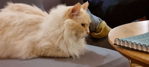 Accueil trÚs sympa, nous étions 2 et avons de l'espace pour prendre tranquillement notre verre. Il est possible de manger des pùtisseries. Lorsque nous y sommes allés il y avait pas mal d'enfants et de bruit, ce qui faisait que les chats étaient un peu timides ou remontaient à l'étage supérieur. Je n'étais jamais allée dans un bar à chat et je pensais que l'on pouvait avoir un chat à notre table pendants quelques minutes histoire de lui faire des cùlins pour que, le client comme le chat soit heureux. Je me suis rendue compte que les chats étaient totalement libres dans le bar. Il y en avait certains qui ne voulaient pas venir ou se cachaient sous le canapé. C'est dommage pour les clients qui viennent et qui ont envie de prendre un moment de détente tout en caressant un chat. Mais je trouve que c'est normal aussi car on ne peut pas demander à un animal de rester à cÎté de chaque personne pour lui faire plaisir. Je suis contente que les chats aient une totale liberté sur ce qu'ils veulent faire. Grùce à cette expérience j'ai pu découvrir le concept du bar à chat que j'aime beaucoup.