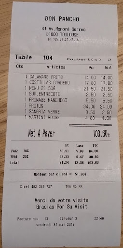 Cependant la facture qui nous a été présentée mentionnait le menu et le fromage à prix fort en plus. Je l'ai fait remarquer, mais le patron a dit que c'était comme ça... 😕