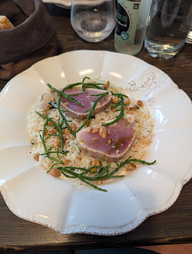 Read moreOn parle beaucoup de cette nouvelle cheffe installée sur Toulouse qui aurait un vrai potentiel. Pour autant ce qui pourrait être un beau RDV fut un moment manqué. Les plats se succèdent sans surprise, pas de découverte en bouche pas de waouh, les ris n'étaient vraiment pas tendres... Donc c'est correct mais c'est du déjà vu. Le serveur est adorable et à l'écoute, c'est lui la vraie rencontre. La cheffe, une fois la cuisine terminée, se pose au niveau du comptoir le téléphone à la main en attendant que cela se passe. Pas un mot pour les convives, pas un regard. On sent qu'il va falloir quitter les lieux rapidement car le service est terminé. La lumière des toilettes est coupée, impossible d'allumer je me retrouve dans le noir et personne ne s'en soucie, bref on se dit qu'il faut partir car on dérange.. Le tarif est assez élevé pour la qualité des mets proposée. Soit ce n'était pas le bon soir, soit il faut être un peu plus humble et à l'écoute...
