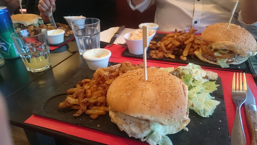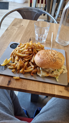 Question pas très cuisine, la présentation est pas mal, la déco de l'endroit est cool. Mais... Question cuisine c'est décevant, le steak du burger a le goût d'un steak de supermarché, et est bien trop petit pour le pain, qui bourre bien du coup. On sent bien l'assemblage à la chaîne et pas du tout le "fait maison" que l'on attend quand on dinne dehors. Les frittes par contre très bien (surprenant). En bref, c'est un Mcdo+... sans l'accueil, sans le tarif attractif et sans la possibilité pour soit ou pour les gamins de s'amuser ni d'avoir de jouet. Pas de rehausseur pour le petit non plus. Ils en ont peut être mais pas proposé et je savais pas sur le moment si j'allais rester... J'ai donc le gamin sur mes genoux sans choqué aucunement la serveuse qui n'a jamais décroché de sourir... Même pas un en coin un peu hypocrite mais sourire quand même...non juste une expression de visage tu me fais hiech je déteste mon taf....doit pas avoir trop de soucis de compta question pour boir...
