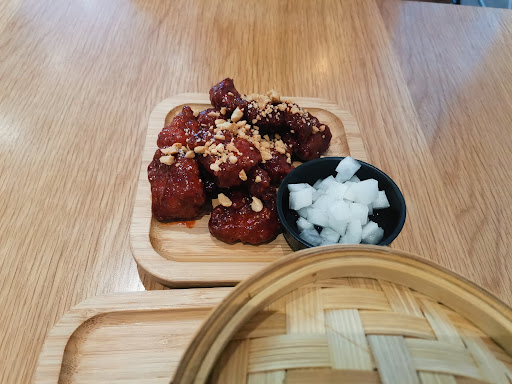Les chiken étaient trÚs bon, la sauce est particuliÚrement bien faite et trÚs ressemblante à celle de la corée. Seul bémol: le manque de crunchy, qui pose la question de la double friture si typique au poulet coréen