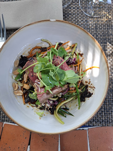 Un plat à la viande juste parfaite (PORC), cuisson et sauce. Par contre c'est la première fois de ma vie que j'ai du m'y prendre à deux fois pour négocier la purée en lieu et place des champignons que je ne mange pas, et c'est incroyable car la purée, mieux encore, l'écrasé de pommes de terres est tellement moins onéreux qu'il est même plus rentable pour le restaurant de l'accorder sans discussion. Il fallait vérifier en cuisine, échanger avec les plat de madame, situation très malaisante j'ai renoncé. Et le comble lorsqu'on m'apporte l'assiette avec les champignon, je découvre que toute cette complexité porte sur, accrochez vous bien, UNE CUILLERE A SOUPE D'ECRASE DE POMMES DE TERRE (donc sans beurre ni crème) ! Bref J'avais juste envie de quitter l'établissement la tempérance de Madame me l'a évité, et elle a été récompensée par un coulant au chocolat de "Guyaquil" comme indiqué sur la carte mais dont le service ne sait pas de quel pays est Guyaquil... Nous avons du réparer cette impasse sans conséquence... Ayant visité l'équateur nous voulions partager cette information. Dessert excellent.