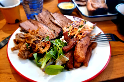 Read moreHier soir, mon ami et moi avons fait une drôle d'escale dans une singulière maison : L'Emboucaneur. Arrivés, un grand gaillard nous installe en terrasse, son sourire bonhomme et les fumets de cochon qui se dégageaient de l'intérieur nous donnèrent la confirmation que n'allions pas nous faire emboucaner. Nous partiment sur un classique entrée plat dessert sur les conseils avisés du lascard sus-cité. Là, l'averse de cochonaille attendue commença à se déverser sur nos innocentes panses, vierges d'un plaisir si pur. Un fin ketchup maison et une moutarde épicée permettaient une ingestion continue de morceaux de porc pannés, simple mise en bouche ! Pour le plat nous optames tous deux pour l'innénarable cochon fumé effiloché, accompagné pour moi d'une portion de macaroni aussi généreuse que le cœur du taulier. Quelques tranches d'onions marinées sans prétention ajoutait une touche habile d'acidité. Pour clore ce periple cochonnesque, la grand mère de notre hôte avait préparé pour l'occasion une tarte tatin assisté d'un digestif. Cerise sur le gâteau-ou chutney sur le foie - le grand gaillard nous prodigua quelques éléments de lore au moment de l'addition : ancien avocat parisien ayant fait une carrière éclair dans le magic circle, il s'est reconverti dans le commerce de pourceaux :...