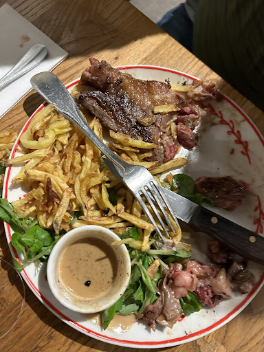 Read moreReservation was not respected, food was cold and not tasty at all! The starters croquettes jambon tasted burned & without meat. Mashed potatoes tasted like mixed with water, salmon dry and milky sauce without using any herbs! French fries were not fried enough and greasy! Entrecôte not the best of my life at all! Waiter and waitress tried their best with apologies, heating up the food again, not counting the croquettes and offering a free drink while waiting for our table and free digestive. Nevertheless, we don’t understand at all why people stand in the line for this restaurant. Please, turn the music off as the quality of the sound is disturbing! What a waste of €75 for dining here. Only the red whine was worthwhile, suggested by the staff. I think owners need to motivate their staff better, especially in...