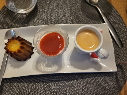 Conquis par le menu à 31€ composé d'une entrée, un plat poisson, un plat viande, fromage et dessert, j'en conserve un agréable souvenir. Le dressage est recherché, la qualité des aliments est au rendez-vous, les goûts aussi. Le vin proposé était en parfait accord avec les mets.
