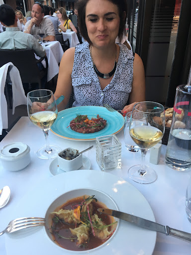 Read moreThis is our favourite restaurant in Toulouse and is usually our go-to place when we want a nice evening out or want to treat a visiting friend. The food is always spectacular and the wine selection is excellent. They also make really good apéritif drinks. It is expensive but it's worth the cost in my opinion. We usually eat outside when we go and the terrace is lovely in the spring/autumn. We ate inside this week and unfortunately happened to be under one of the sound system speakers and the bass was loud enough that it was difficult to hear each other speaking. Next time we'll ask for a table on the other side of the bar. I was also put off by the woman working the bar who kept coughing without covering her mouth, but the staff are generally very helpful and passionate...