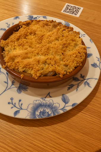 Le crumble rhubarbe–amande a été une belle surprise. L’équilibre des saveurs était impeccable, avec une texture fondante à l’intérieur et croustillante sur le dessus. Un dessert simple mais parfaitement maîtrisé, plein de goût.
