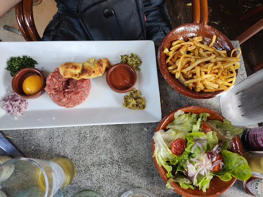 Concernant nos plats. Le tartare de boeuf était top, très copieux avec un assaisonnement parfait. La salade au saumon avec roulé de pizza était bonne, peut être un peu déçue par la consistance du croissant / feuilleté, il était bon mais un peu mou.