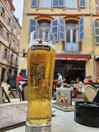 Read moreJe parlerai ici uniquement de la partie "Bar" du lieu. C'est un endroit dans lequel je commence à avoir mes habitudes avec mes amis. Arriver, choisir une chaise en osier avec dossier, admirer la mythique place des Carmes mais aussi la belle devanture de ce mythique lieu toulousain, présent depuis des années admirant les clients passer sans ne bouger d'un pouce. Ces quelques éléments peuvent déjà faire de ce bar une expérience mais ce n'est pourtant pas ce qui me pousse à chaque fois à revenir ici. C'est aux alentours de 18h, le soleil commence à tomber en fonction de la saison, s'asseoir en bonne compagnie, commander des bières, et rire, surtout rire, entre nous, avec les autres car l'ambiance y est extrêmement chaleureuse, et ce, porté par les serveurs, leur bonne humeur, leur sourire. Je porterai une attention spéciale au plus jeune des serveurs, blond qui, marqué d'un professionnalisme hors pair arrive toujours à avoir les bons mots avec les clients et arrive à nous faire revenir à chaque fois. Parce que finalement c'est ça un bar, un endroit où l'on se sent bien et où l'on est déçu lorsque sa fermeture arrive. Évidemment que...