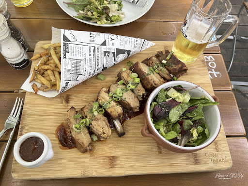 Le Biergarten se distingue également par la qualité de ses plats. Les assiettes sont non seulement bien préparées, mais aussi esthétiquement plaisantes et généreusement servies. Lors de ma visite, j'ai eu le plaisir de déguster des ribs d'agneau, qui se sont révélés excellents. La cuisson parfaite et les saveurs délicates témoignent du savoir-faire culinaire de l'établissement.
