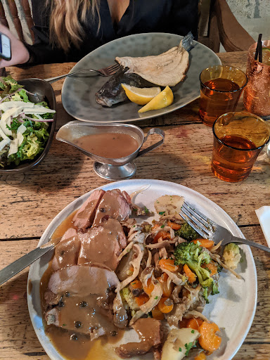 We managed to book a place for dinner at valentines day here and we struck gold. We came back the day after for lunch. The first night our waitress did not speak a lot of English but did her best asking around to the cook and the other waiters how to translate some words from French to English. Great service overall. The lamb and vegetables i had for dinner were delicious and my girlfriend couldn't stop eating the pepper sauce. The fish was nicely cooked and tasty. For lunch the day after we had the lunch menu (which you can choose starter, main and dessert for 19€) and it was really good bang for the buck. We were stuffed after and took our time enjoying our white wine...