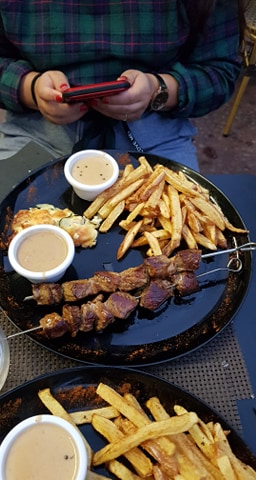 Les brochettes de boeuf idem, bonne maĂźtrise de la cuisson, la viande Ă l'air ĂȘtre de bonne qualitĂ©... MĂȘme accompagnement que pour l'entrecĂŽte.