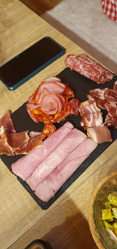 Read moreRestau a éviter. On commandait 2 planches de saucisson et fromages pour entrée et 2 bouteilles de vin comme apéritif, on était obligé de réclamer le vin parce que oublié. Le pain est donné avec des quantités ridicules obligeant d'en redonner toutes les 5 minutes. Ils ont une porte vers une autre pièce qui ne se ferme pas automatiquement ni manuellement par pa serveuse, je me suis levé 10 fois pour la refermer parce que nous étions en plein courant d'air. Au bout de 1 heure d'attente mes 7 collègues ont reçu leur plats , moi j'attendais mon pizza. Le plat de poisson est arrivé avec des legumes pas avec le riz annoncé et demandé . Les serveuses ne connaissent pas les plats. Suis allé réclamer mon pizza pour découvrir qu'il la mettait à peine au four ,devant lequel le patron glandait toute la soirée dans son siège. Une entrecote seignante était servi froide, après une demande de la réchauffer elle est arrivée beaucoup plus cuite et plus seignante. Apres le pain est arrivé encore CONGELE sur la table !La 3eme bouteille de vin demandée est arrivée trop tard en fin de repas. Ceci nous a tellement dégoûté que nous n'avons plus pris de dessert. 8 personnes qui ne reviendront jamais....