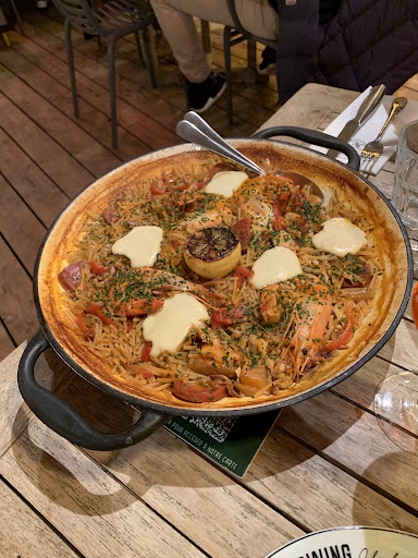 The place is hip, and the food is good. I visited with a group of 8 and we were served nicely and quickly by the staff. The only thing that was very offsetting was the fact that there was shortage of a lot of meals : sausage was out, beef cuts were mostly out apart from the very expensive ones... So yes it was Sunday noon, but a place of this size , which is one of the few places open on a Sunday in town, should be ready to have big affluence and not have several shortages. It demonstrated that the place was not ready to welcome customers a shame after that they had to close due to the river damaging their place. Still four stars but 5 was close. And also the music in the background was a bit annoying as the outdoor is already quite loud with the amount of...