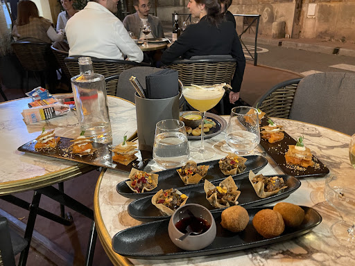 Read moreExcellent restaurant, carte très alléchante avec des produits frais sous toutes ses formes, servit avec des tranches généreuses de délicieux pain de campagne. Je me suis sentie obligée de prendre la formule 3 plats a 20e tellement la carte me faisait envie, pourtant j'ai un petit appétit. Des cromesquis de canard confits bien rondes et bien remplies, pas de patate écrasée mélangée a la viande, que-du-bon! Un tataki de daurade fraîche, avec des parts de bonne épaisseur, qui joue avec le chorizo sous forme de chantilly, de petite puree de légume toute douce, un petit croquant délicieux aux sésames, le tout maison évidemment ! Enfin je me suis lâchée avec du foie gras, bon mais un peu trop gras a mon goût. Ça reste délicieux et je me suis régalée. Je crois que mon amie végétarienne aurait voulu goûter, avec les bonnes odeurs qui émanent de l'assiette! Heureusement ils ont pensé à elle dans la carte, et même si je n'ai pas goûté, pcq je n'avais plus faim avec ces 3 petits plats, elle s'est régalée Mention spéciale pour les 3 petits burger a l'encre de seiche, au poulpe et a la saucisse, avec compotée d'oignon rouge. Je me méfiais du mélange, mais pour en avoir goûté un dans l'assiette de mon voisin, c'est délicieux! En plus l'assiette est très bien servie, vous ne regretterez pas. Seul bémol pour le service, qui reste un peu lent, où il faut se faire remarquer pour attirer l'attention du serveur. Il faut dire qu'on était 8, ceci explique cela... Autrement ils sont très aimable et ont de l'humour ! Idem pour les cocktails, un peu long.. le barman ne vous propose que des créations a partir de vos envies. Un peu déçue par le mien, la prochaine fois je préciserai mieux ma pensée. Mais ils sont très beaux et originaux ! J'y retournerai les yeux fermés, les papilles...