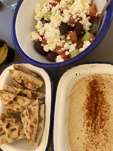 Le meilleur Restaurant Grec de Toulouse ! Première fois chez Les Filous, nous avons déjeuné le Samedi (sans réservation) ; en terrasse très agréable (l’intérieur était très sympa aussi !). Le personnel est très agréable, donne de très bons conseils ; une équipe vraiment sympa ! Le service était rapide. Nous avons commandé : L’indomptable Falafel (10€ formule boisson) : ma mère a adoré ce sandwich, tous les produits sont excellents. Très goûteux, un sandwich délicieux. Les sandwichs sont trèeees généreux. 😉 Elle a pu goûté leur citronnade, apparemment délicieuse et rafraîchissante. Ainsi que le Banoffee, également validé. Salade Grecque (5€) : tellement rafraîchissante (mais à ne pas louper en hiver😹), fort bien assaisonnée, bon produits. Une bonne quantité pour 5€ ! Je n’aime pas la Fêta, mais dans cette salade trop bon 😋 Houmous (6€) : servi avec un pain pita, un vrai bon Houmous 🤤 ; bien goûteux, pas gras (car on peut parfois ce retrouver avec beaucoup d’huile) ! Encore une fois très bonne quantité ; avec le pain pita c’était exquis… Le pain était d’ailleurs tout aussi bon nature 🙃 Amba (+1€) : sauce mangue et épices ; je n’en avais jamais goûté … miam. Vraiment bon, je l’ai utilisé (seul😹) sur le pain pita et aussi avec l’houmous. C’était bien relevé, goûteux, frais et épicé. Parfait pour les palais sucré/ salé ! Ma mère en a aussi ajouté dans son sandwich (c’était apparemment « délicieux »). Je recommande.