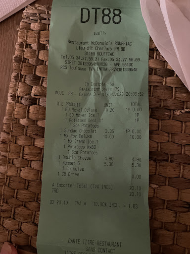 I thought McDonald's France might like to know how this restaurant was letting them down, but the only way to contact them is by post or by phone. Haven't McDonald's heard of an online feedback form or even email, or don't they want to know? Poor show McDonald's