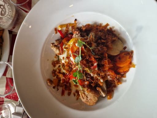 Read moreL'experience halle de la machine était conforme à nos attentes et interessante. Puis vint le moment de manger. Le cadre est sympathique et un concert nous a bien mis dans l'ambiance. La nourriture était correcte sans être a aventureuse. Pourquoi 3 étoiles me direz-vous ? Premièrement les prix exhorbitants ! 18 euros pour une assiette de fromages supposement pour 2 personnes qui nourrirait pas un enfant. 18 euros également pour une assiette végétarienne -correct certe - mais qui ne vaut clairement pas le prix d'une formule entrée/plat/dessert dans un restau. 10 euros pour 6 petites patates et une petite tranche de jambon. Deuxièmement, le service. Les serveur sont sympathiques mais clairement à la masse. Des saisonniers je suppose (j'espère ) en grand nombre qui ont l'air d'avoir fumé la moquette pour certain. Obligé de répéter le manège de demander à une personne, d'attendre, de le voir errer plus tard comme un caneton ayant perdu sa maman, de soutirer une autre personne à sa pause clope, d'attendre à nouveau pour que le premier revienne finalement. Côté positif, ça nous a...