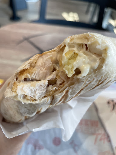 Pour une première expérience chez cette chaîne de restaurant ça commence mal. Accompagnée de mon ami en fauteuil roulant, nous faisons face à une marche de 20cm. Le personnel présent à bien été témoin de deux brins de femmes inclinant le fauteuil de notre ami en arriere sans juger utile de nous proposer leur aide. Une fois sur place... Nous voyons deux employées en caisse ne saluant pas notre entrée et ayant passer l entièreté de notre repas a discuter entre elles comme si elles étaient au salon thé pendant leur pose. Seul interaction tel que "bonjour, Voici votre commande et passez un bon repas" était due a mon passage en caisse pour l encaissement. Hormis les rires et gloussements sonores entre les deux employées Le manque de communication entre le personnel est dommage. La communication est faite par un ordinateur répétant le numero il n' y a aucune communication au sein même de l équipe. Pas a un seul moment le cuisinier n a interagir avec ces hôtesses. C est bien dommage. Concernant l expérience culinaire c était un flop complet. Quel était mon choix de tacos ? Je ne saurai le dire car il était fade et sans saveur. Les frites de patates de patates douces épices étaient trop cuites, certaines même cramées et je dirai même cuitent dans la même huiles que les frites normales. Même des frites de patates douces surgelés de supermarché étaient de meilleure qualité que ce que j' ai pu ingéré ce jour là. Et le pire : c est la sûr quantité de sel présent sur les frites. Des frites de patates douces n ont pas a être aussi chargées en sel. Un bon point par contre bien que je ne l ai pas gouté il semblerait qu il y ai un menu veggie sortant de l ordinaire. Espérons seulement qu il soit meilleurs que le tacos...