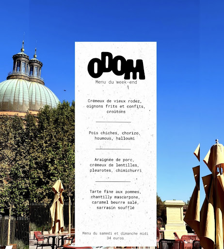 Niché dans un cadre d’exception, Odom profite d’une localisation parfaite : une terrasse qui invite à prolonger l’été, face à un dôme baigné de lumière. L’atmosphère rétro-chic, subtilement décontractée, pose d’emblée le ton d’une adresse où l’on se sent bien.