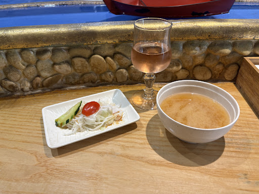 The fruit salad was enjoyable (tin fruit) ! Unfortunately, the small portion sizes were limited to just one serving for dessert. After a poor dĂźner : The boats were not replenished quickly enough, leaving us waiting indefinitely for new ones to arrive while the same ones kept passing us by; Untill 4 more costumers arrived and seat before us, so we didn't get to touch the new idem made. The wasabi lacked sufficient kick, and the ginger was overly dry. We found ourselves waiting for food, forced to settle for the blind items that were still circulating for the last 20 minutes, while the staff, after tidying up, took a break to eat at the entrance corner! I believe that was the most intriguing sight to witness: the staff dining during service while customers were still waiting (at 8:30 PM). The restaurant has a lovely decor and definitely has potential for...