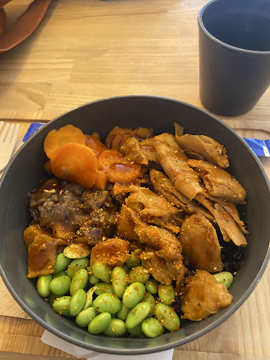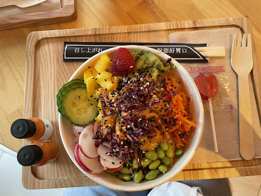 Read moreThey have a few really interesting vegetarian options. They have black rice and some faux meat options. Unlike many other poke places around where you choose the toppings, here it is pre designed. I tried the chicken vegetal which I really enjoyed. They have a collaboration with Kusumi tea going on so you can enjoy a cup of tea for free with your order. The lady at the counter...