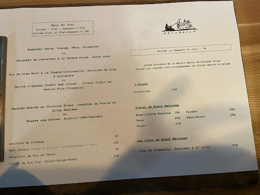 La particularité d’Abondance est de nous proposer des viandes de qualité, maturées et vendues au poids. N’hésitez pas à demander la race et la provenance de la pièce choisie! Les pièces de viande sont cuites à la plancha et servies avec frites maison et salade verte. J’ai pu me rendre souvent dans ce restaurant (le midi et soir) les plats du menu préparés selon les produits frais de saison et cuisinés avec des ingredients nous rappellent nos voyages, Afrique, Asie, Amérique du Sud...Pour les petites faims le restaurant nous propose également des plateaux de charcuterie maison (Coppa, Bresaola, Terrines...) et de fromage à partager. Une cave à vin à température contrôlée nous permet de choisir la bouteille de vin de notre choix. C’est une sélection de crus provenant de viticulteurs à production raisonnée. L’acceuil et le service sont assurés par une personne sympathique qui nous met à l’aise dès les premiers instants. Cette personne nous a bien renseigné sur les produits et les préparations. Le propriétaire, qui dirige la cuisine, n’est pas avare de conseils et met un point d’honneur à ce que son restaurant réponde à un niveau de qualité supérieur à la moyenne. Le plaisir, comme nous sommes en droit d’attendre dans un restaurant, est bien là. C’est une bonne expérience gustative et sociale que je vis chaque fois dans cet établissement. Avec apéritif, vin, repas, dessert, café, comptez environ 50€ par pers. Vous ne le regretterez...