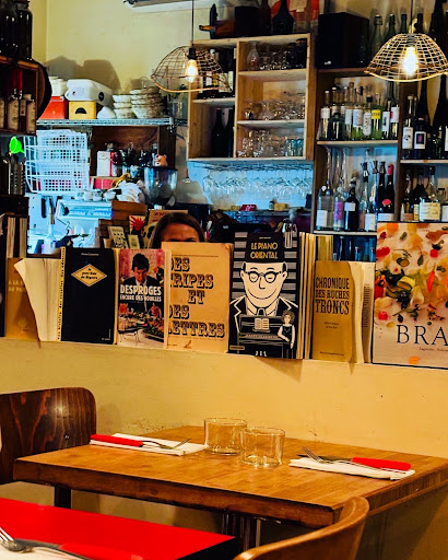 L’ambiance est celle d’un bistrot à l’ancienne avec des livres aux titres qui mettent le sourire aux lèvres (big up pour Des tripes et des lettres), des bouteilles de vins natures à en faire pétiller les yeux et une sélection musicale uniquement composée de vinyles !