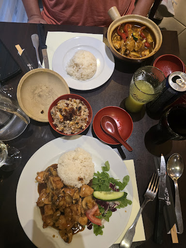 Restaurant très sympathique et chaleureux surtout le patron toujours de bonne humeur et souriant. Je suis une habituée c'est mon restaurant favoris ! Par contre ce soir, j'ai été déçue par la serveuse, je préfère carrément l'ancienne car avec la nouvelle on a l'impression qu'il faut se dépêcher pour manger ! Pour moi c'est inadmissible dans un restaurant !!! Je suis venue avec mon mari et j'ai même pas eu le temps de finir mon entrée qu'elle était déjà la devant nous à nous donner le plat ! Non mais n'importe quoi ! La table était tellement pleine que je ne savait plus comment j'allais faire pour manger. Et en plus, elle a pu mettre les assiettes sur la table en enlevant l'assiette de nems donc jai du finir mon nem sans sauce. Du coup, j'ai fini mon entrée et le temps que je finisse le plat (j'avais pris un poulet champignons) il était déjà froid donc j'ai pas pu le finir car j'aime pas la sauce quand elle est froide. Donc personnellement, j'y retournerai que quand ils auront changer de serveuse, car je n'ai pas envie de re être servi par cette fille à...